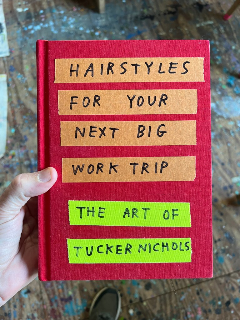 Mostly Everything was intended to be (and is) the first big career-spanning book of Tucker Nichols’ work. He’s an artist who works in lots of different mediums, with lots of different materials—more than I realized before I worked on this project—so the real challenge for the book was how to show the reader the various ways Tucker Nichols makes art, and have it all make sense together. In our first official meeting about the book, Tucker arrived with a stack of green and yellow notecards, and each one had a word written on it: “notes,” “sculptures,” “artwork my mother saved,” “blue.” The cards were intended to show all the different ways his work might be categorized. How do you make all this disparate stuff work together in a book?