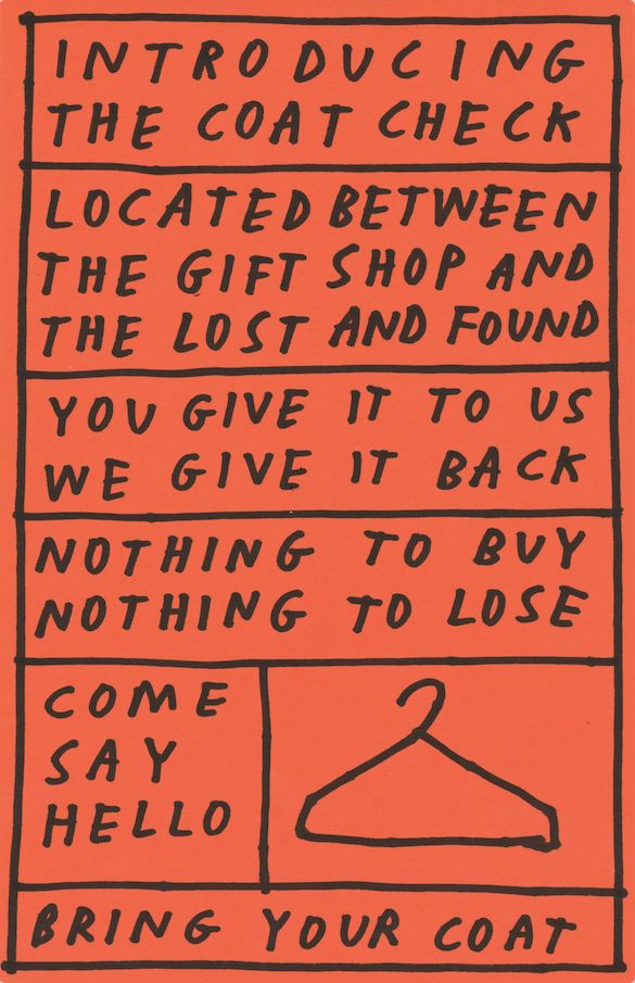 Early on, I really wanted the cover to just be filled with handwriting, like these funny handwritten signs he made for the SFMOMA. I kinda fell in love with these signs he made. We decided the front cover needed an image, but these signs he made were really the basis for the cover art.