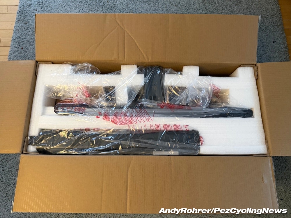 Opened up, the box reveals a well packaged (and protected) unit. The packaging protected and stabilized the trainer with well-engineered packaging. If Wahoo put this much though into packaging, it’s fair to assume they did their homework engineering the unit as well…