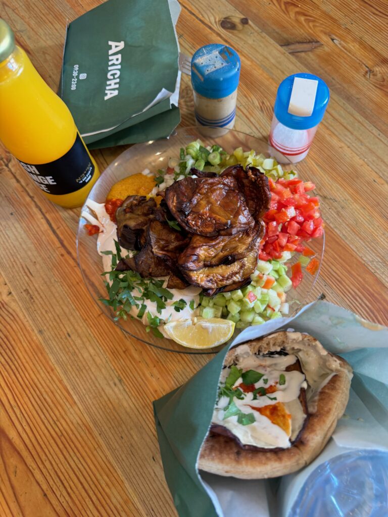 Sabich Aricha: Sabich – One of Israel’s signature street foods, sabich is built around fried eggplant, eggs, and the classic pita stuffed with veggies. It’s a strong option when you want something filling that still feels distinctly Israeli, and it works well as a shared item if you are already deep into the crawl.