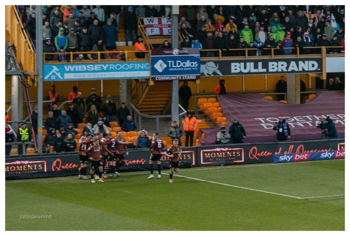 The goal was harsh on Wigan who up until then had been the better side. Their best chance came on the half hour mark when Murray had sent a dangerous ball into the box, Callum Wright beat Brad Halliday to flick it into the path of the unmarked Raphael Borges Rodrigues. But from an angle the Dutchman could only lift the ball over the bar with just Sam Walker to beat.