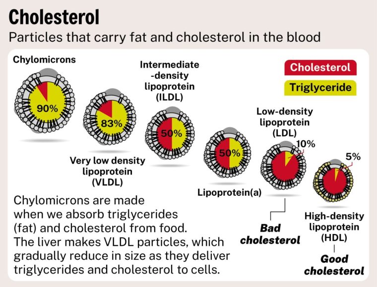 That’s not the only way that the cholesterol story has changed. Doctors no longer believe the blood’s total cholesterol level governs the build-up of dangerous plaques. Instead they are interested in the relative amounts of the various particles.