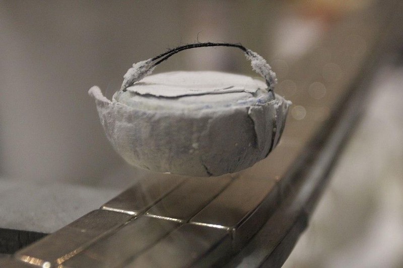 By creating a track where the outside magnetic rails point in one direction and the inside magnetic rails point in the other, a Type II superconducting object will levitate, remain pinned above-or-below the track, and will move along it. This could, in principle, be scaled up to allow resistance-free motion on large scales if room-temperature superconductors are achieved.