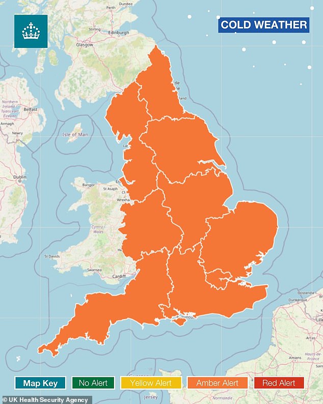 Dr Paul Coleman, consultant in health protection at the UKHSA, said: ‘The weather is forecast to be very cold across England over the coming few days.