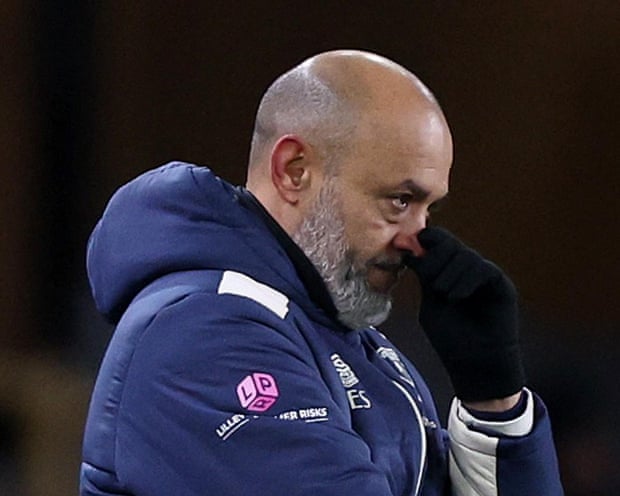Former Wolves head coach Nuno has already been sacked once this season and a ninth game without victory will increase the pressure on a man who was more popular with the home fans, who celebrated first-half goals from Jhon Arias, Hwang Hee-chan and Mateus Mané, than the away end at Molineux. West Ham failed to get a shot on target against a team without a clean sheet prior to Saturday, who had secured three draws and nothing else in 19 matches, to put them in danger of falling below Derby’s record low of 11 points, although if the Hammers continue to play like this they might finish only three better off.