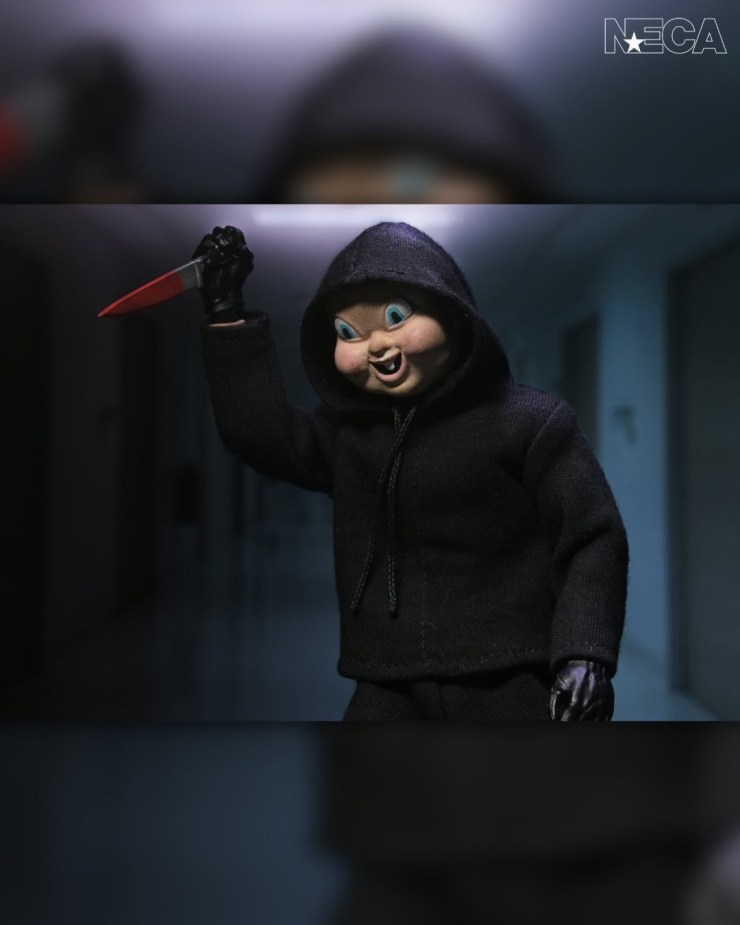 The company previews the 8″ scale clothed action figure, “Relive a modern horror classic over and over again…on your shelf! From Blumhouse’s Happy Death Day and Happy Death Day 2U, NECA presents this retro-style clothed action figure of the Bayfield Babyface Killer.
