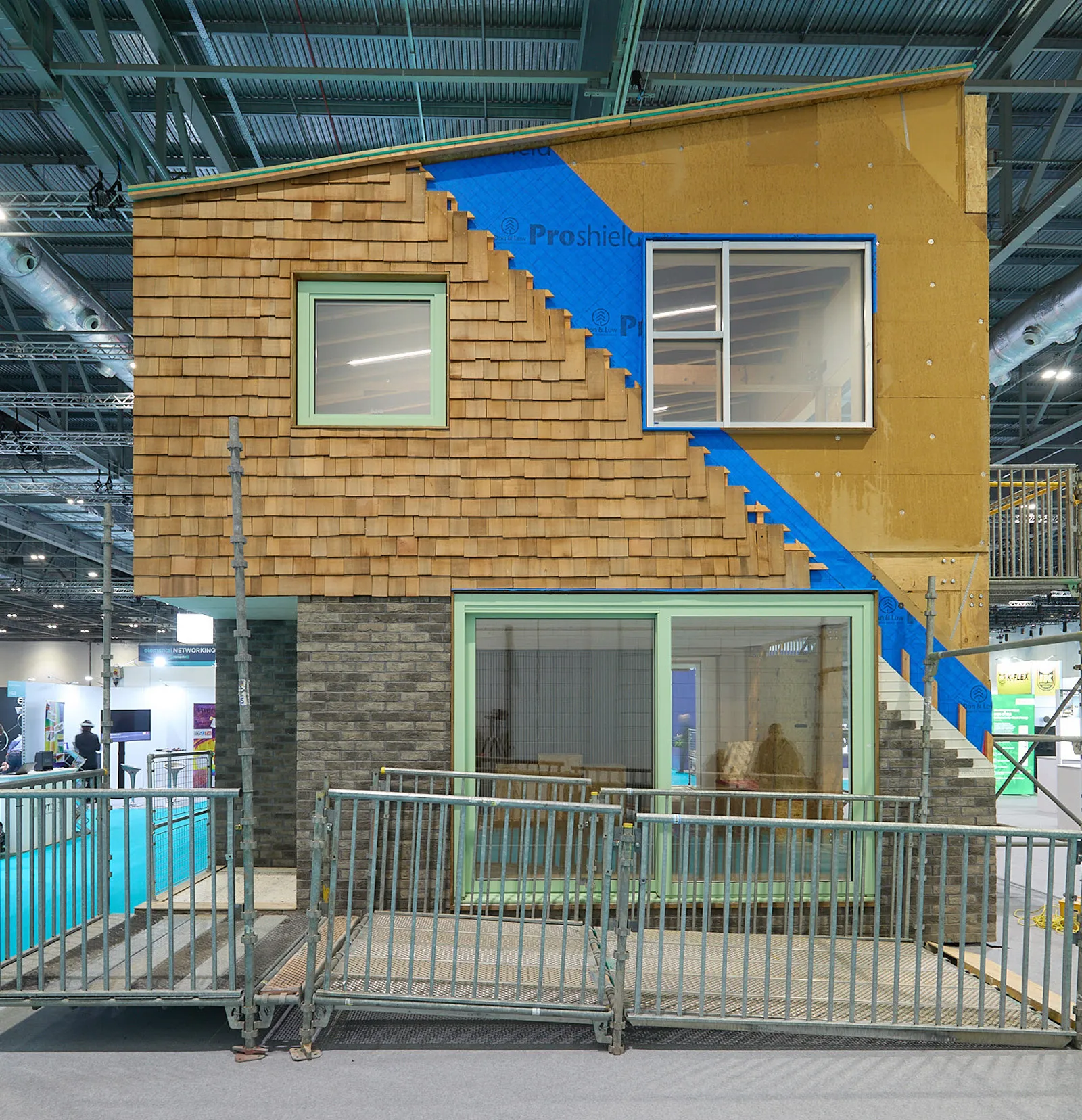 The prototype illustrates multiple external cladding options to demonstrate system flexibility, while the primary structure employs regenerative materials, including hemp, timber and wood fibre – producing breathable, moisture-buffering and recyclable assemblies. The approach minimises embodied carbon while locking up biogenic carbon within short-rotation biomass materials, effectively turning the building into a long-term carbon store.