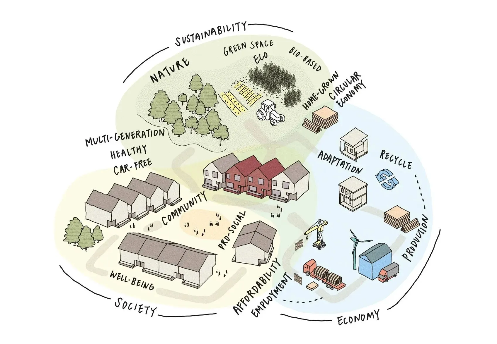 Natural Building Systems says the ADEPT system links designers, makers, builders and suppliers in a regional supply chain that prioritises traceability and local employment and can produce homes at scale.