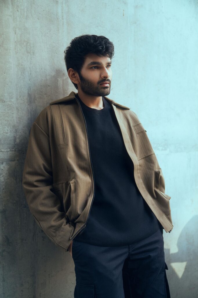Aniesh, who is making his debut in films with the upcoming love and action entertainer Itlu Arjuna, shows effortless charm, in his latest photoshoot. His look is clean, simple, and modern. The styling has a casual yet classy feel, with soft neutral colours and smart outerwear that make him look polished but still relaxed. His neat grooming, trimmed beard, and textured hair add to the fresh, urban vibe.