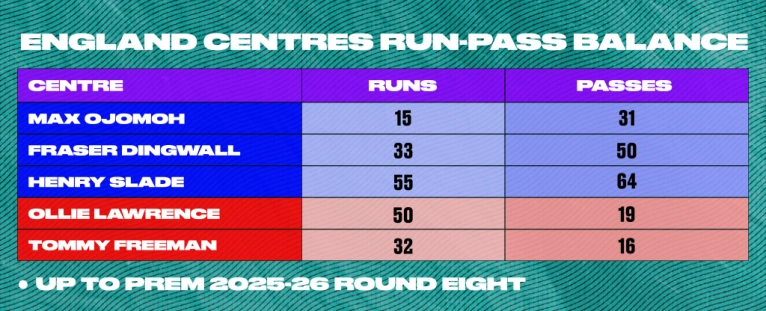 Twelve and 13 are fluid rather than fixed numbers in the modern game, and coaches will cheerfully swap players around to achieve the impacts they want. Lee Blackett and the England brains trust switched Lawrence and Dingwall over to score the decisive try of the game against the All Blacks in November.
