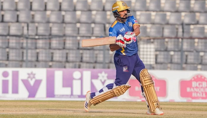 Dhaka Capitals’ Nasir Hossain in action during their BPL match against Noakhali Express at the Sylhet International Cricket Stadium in Sylhet on January 7, 2026. — BCB