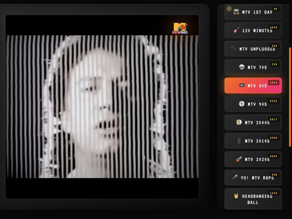 There’s a beautiful world out there, if we’ll just get unglued from our screens. Streaming killed the video star. Let’s make them stars again. Or if you’re in the mood to be glued to your screen, cue up MTV REWIND and enjoy. (And maybe buy the dev a coffee — especially just in case some lawyer shows up!)
