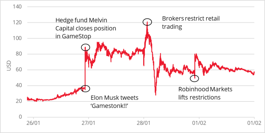 GameStop price action, 26 January – 1 February 2021
