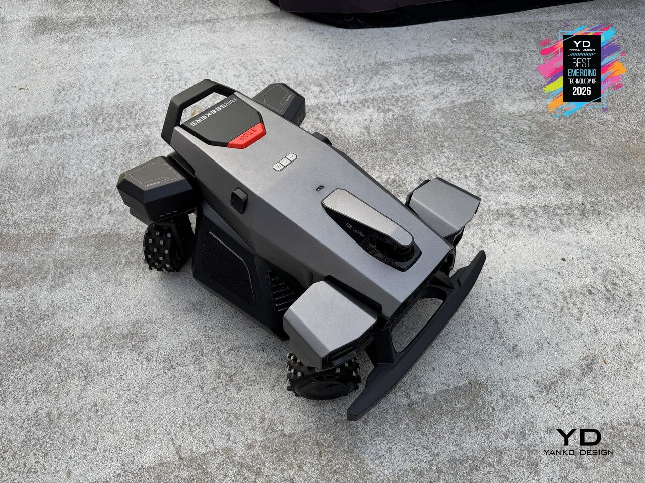 Robotic mowers have mostly relied on differential steering or front omni-wheels to navigate yards, which works for wide-open lawns but struggles with tight corners and complex obstacles. Airseekers Tron Ultra uses a 4SWD drive system with independent control of each wheel, allowing it to move in ways that feel closer to industrial robotics than consumer lawn care. The mower can rotate in place without a turning radius, shift laterally, horizontally, or even diagonally through narrow gaps between garden beds, and pivot around obstacles up to 2.36 inches tall without backing up. That four-corner independence changes how the mower approaches difficult terrain. Upgraded high-traction wheels give it the grip to climb inclines up to 85% grade and traverse wet grass without spinning out, while intelligent environmental detection adjusts power distribution per wheel to prevent soil compaction and turf damage.