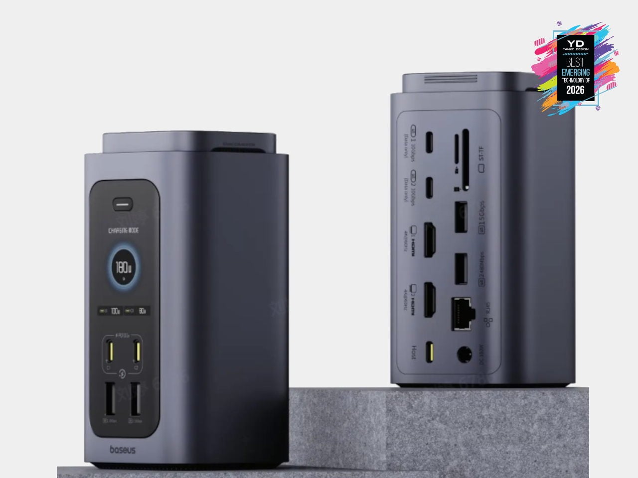USB-C hubs and flat docks have become standard, but most still sprawl across the desk with cables radiating in every direction. Baseus Spacemate RD1 Pro is a vertical, 15-in-1 docking station that treats the dock as a compact desktop appliance instead of a dongle. A single USB-C cable links a Windows laptop to dual 4K monitors, 10 Gbps USB-C ports, SD and TF slots, and 1 Gbps Ethernet, while the tall, minimalist tower tucks ports on the back and keeps the footprint small.