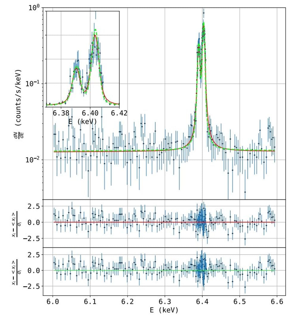 In this work, the researchers used the XRISM x-ray astronomy space telescope to observe the cloud. XRISM is able to observe x-ray sources in great detail, by resolving the energy level of individual photons. The observations are centered on what’s called the Fe Kα emission line complex, where Fe is iron, and the Kα line is when an atom is ionized and releases an x-ray photon. In this context, the atom in question is iron.