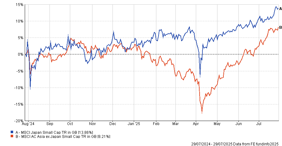 MSCI Japan Small Cap vs MSCI AC Asia ex Japan over 1yr
