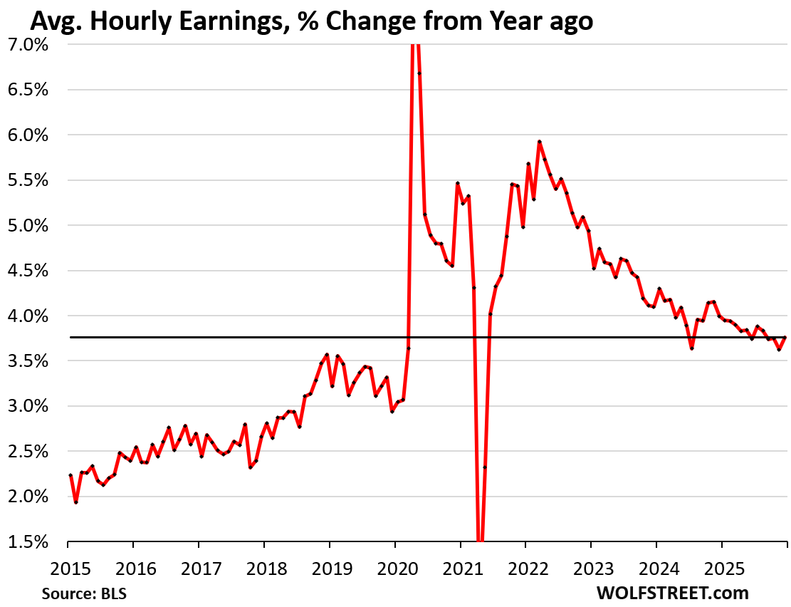 Year-over-year, average hourly earnings rose by 3.8% in December.