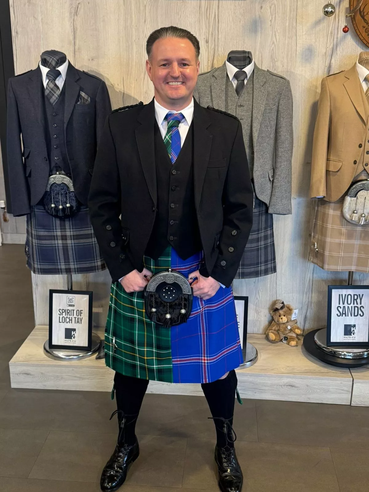 “Iain has secured the contract for the two kilts – it’s the first time one person has had both tartans – and that’s why I was able to do a half and half. It’s a fun way of highlighting the show to the world and getting the positive message across.”