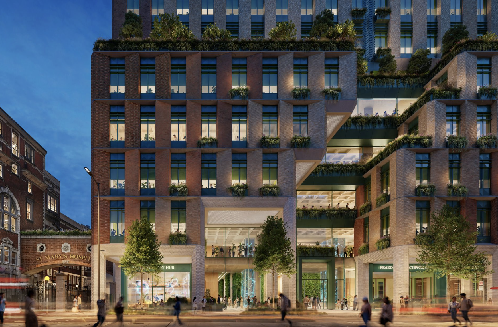 Ground-floor spaces are planned for education, community uses and improved pedestrian links between Praed Street, Norfolk Place and the wider hospital estate.