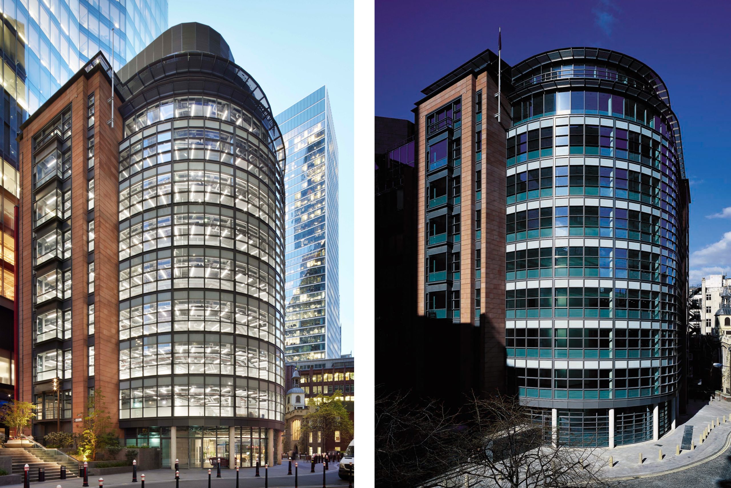 One Great St Helen’s original design reflected the contextual civic modernist ethos of Hurley, Robertson & Associates at that time – with a curved glass frontage sitting between two red sandstone ‘bookends’. It was awarded the BCO Award for Best Commercial Office Building (South East) in 2000.