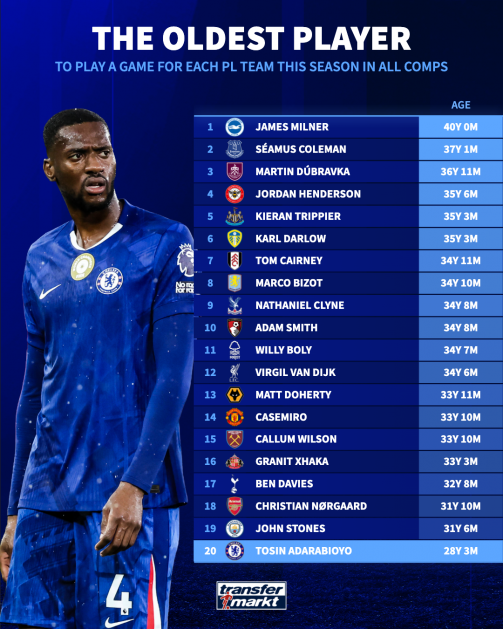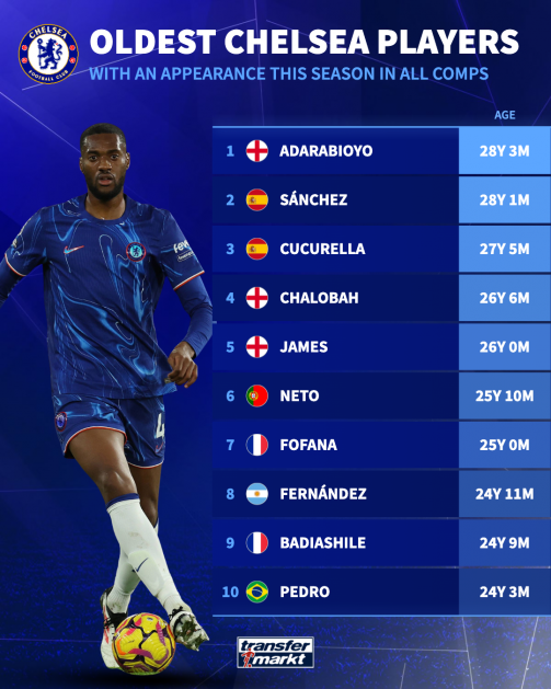 The Blues are a team full of talented youngsters, and they have now added another young manager into the mix in Liam Rosenior. As illustrated in the graphic above, Chelsea’s oldest player used in any competition this season is centre-back Tosin Adarabioyo, who only recently turned 28. Prepare for a tongue twister, as he is by far the youngest oldest player used among all Premier League clubs this season. Next on the list is Manchester City, whose oldest player has been 31-year-old John Stones. Now, some would point out that Chelsea have still had success with this young team; they won the Europa Conference League and the Club World Cup last season and qualified for the Champions League.