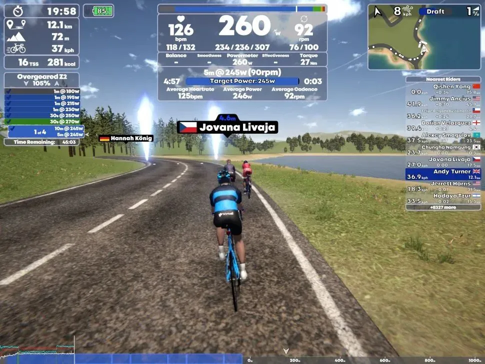 You can’t do the group meet-up style of rides as you can on Zwift or MyWhoosh, but it reminds me more of real world bike racing socials. There is a bit of chit chat and friendly banter, before the intensity ramps up and everyone goes quiet. I like it, and it’s fun.Â