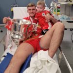 Despite suffering a broken leg during the 2024 Irish Cup FinalOdhrán kept track of the match on the BBC iPlayer… before welcoming his son and the Irish Cup to hospital…… and enjoying the trophy tour