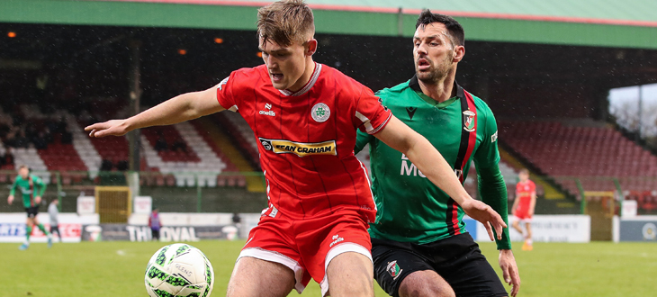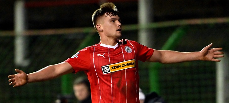 Having penned his first professional contract in the summer of 2020, a volleyed strike against Coleraine in December 2022 was the first of six goals the Northern Ireland Under-21 international scored for the Reds, with the most celebrated arguably being an injury-time winner to defeat Carrick in January 2024 (below), although he did also pop up with a memorable last-gasp leveller against Glentoran just a few weeks later.