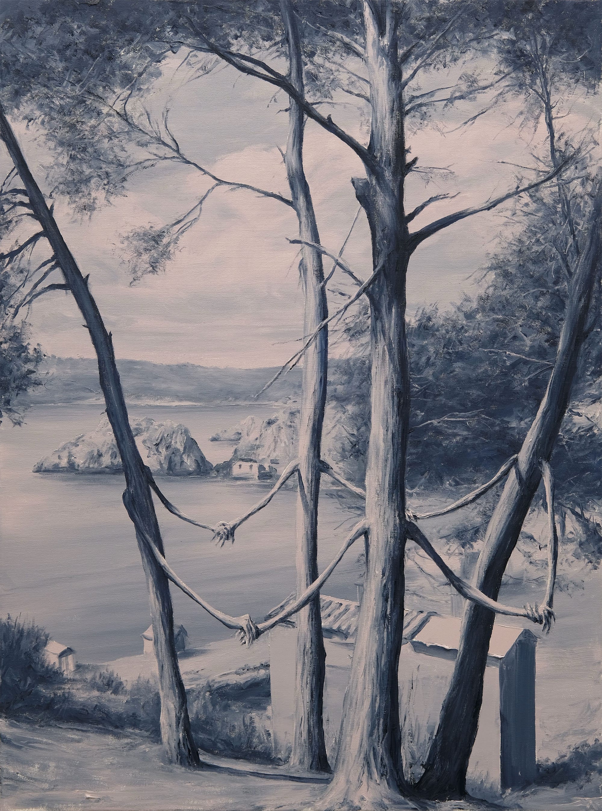 “Idyll” (2025), oil on canvas, 23 5/8 x 31 7/8 inches