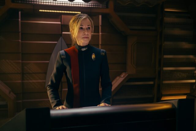 15 years later, Caleb has built up quite a rap sheet and finds himself on a Torothian penal colony shuttle. The wily young man gets free and uses that time to hack the computer to find his mom (no dice) before crashing and getting re-arrested. Meanwhile, Ake has retired to a nice school on Bajor, until Admiral Vance shows up for some ice cream and a job offer. Mistakes were made during The Burn, and she is the one to put it right. Being 423 years old (half Lanthonite), she can remember the good old Federation before the bad new compromises. In classic Trek style, Vance pitches her the job of chancellor of the renewed Starfleet Academy, to shape this generation of cadets in those key values of hope, exploration, and all that stuff. She doesn’t want to let go of her regrets, but Charlie adds a sweetener… he found Caleb Mir. Cut to that Torothian prison and (a recommissioned) Captain Ake is offering a sullen Caleb a second chance. Join Starfleet Academy? That’s a hard pass for this hard kid, but she gets him with her own sweetener. Mom broke out of prison and Ake will help him find her… and hopefully he agrees as that’s the whole premise of this new TV show.