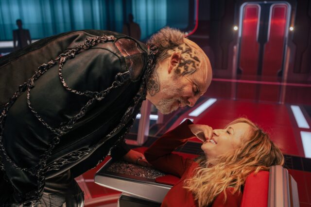 But this show isn’t just about just about “Kids These Days” (silly title, btw), as we also understand the adults guiding (and opposing) them. This is especially true of Captain Nahla Ake, and it’s no surprise that Oscar winner Holly Hunter carries much of the heavy lifting for the drama of this season opener. She is certainly a different kind of captain, fitting for this dual role as smart commander and nurturing educator. Laying almost as much weight on newcomer Sandro Rosta was a bigger gamble that is paying off so far as the show builds a clear arc for his reluctant Caleb Mir to find his way in Starfleet, the bigger story and mystery of his mother (Tatiana Maslany) making the stakes personal and relatable. A few others stand out in this first episode, including Kerrice Brooks as the intensely new SAM, nicely counterbalanced with the return of Robert Picardo, bringing his trademark wit to The Doctor along with a welcome sense that being online for over eight centuries carries its own burden. As for Paul Giamatti’s Nus Braka, he certainly is hamming it up, but behind the scenery chewing is clear menace that makes his villain unpredictable and dangerous.