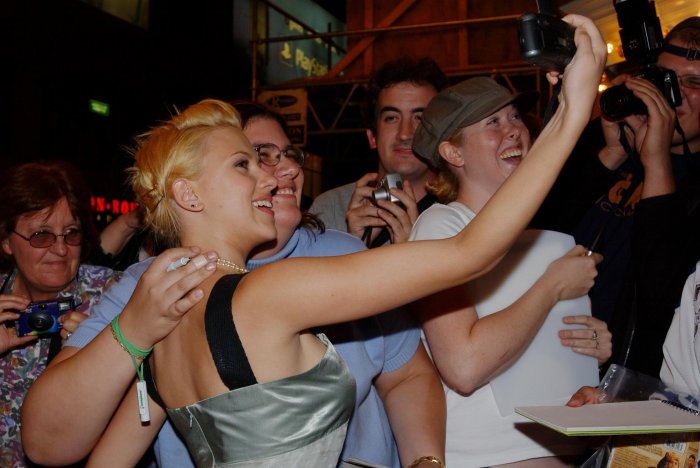 Scarlett Johansson takes a photo with fans at the Toronto International Film Festival premiere of “Lost in Translation” at the Elgin Theater in Toronto, on September 5, 2003. Johansson went on to win the BAFTA award for Best Performance by an Actress in a Motion Picture – Comedy or Musical for her role in “Lost in Translation.” Photo by Christine Chew/UPI | License Photo