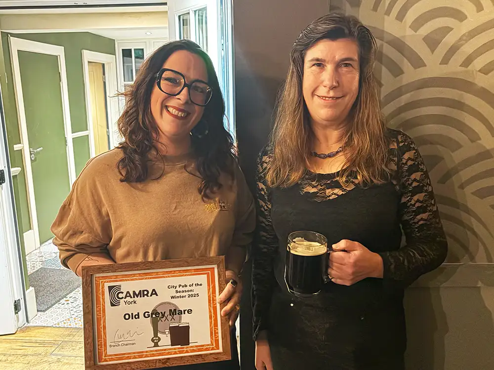 Melissa Reed, from CAMARA’s York Brand, added: “The Old Grey Mare have made a very positive impact on York’s beer scene – always pouring great pints of real ale along with a warm welcome and great atmosphere. It’s a pleasure to present them with ‘Pub of the Season’ for Winter, 2025.”