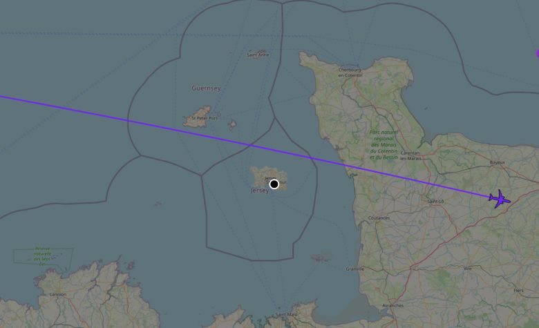 Pictured: Flight tracking data showed Tump flying over the Channel Islands at around 11am this morning.