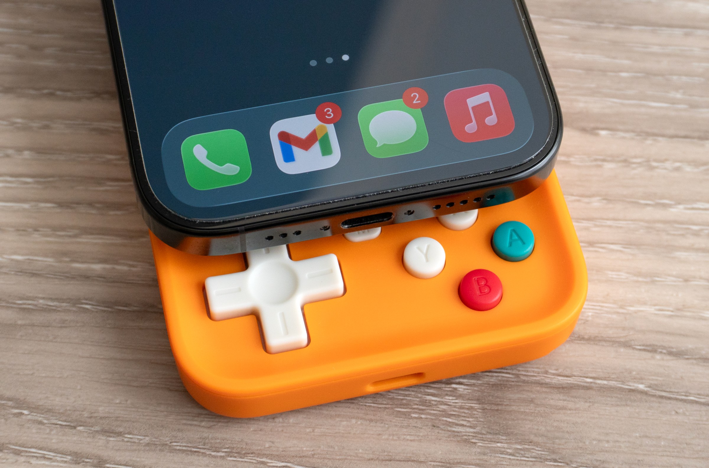 The M4 controller doesn’t protrude far enough from the bottom of a phone to play games in a portrait orientation.