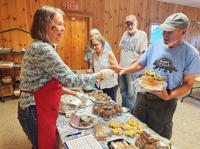 Susan Hoekstra leads the volunteers at the baked goods table on July 19 at the Searsmont Town Library’s Book and Bake Sale.