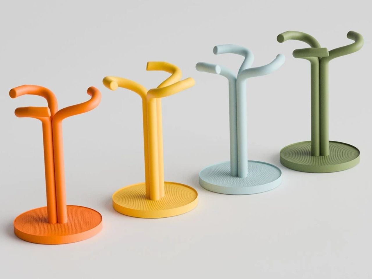 Functionally,y Aghsan resolves many frustrations associated with traditional umbrella stands. A heavy metal base anchors the design, ensuring stability and preventing tipping, a common issue with lightweight stands. The open perforated structure encourages airflow, while the raised edge of the base keeps umbrellas securely in place even when the stand is partially full or slightly moved. Long umbrellas can be leaned comfortably while smaller ones find their place within the branching openings above, creating intuitive organization without visual clutter.