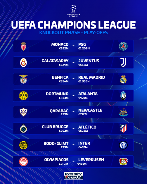 Going into the draw each club has two potential opponents in the play-off round, ranked on where they finished between ninth and 24th in the league phase table. The draw is as follows: We will reveal the exact ties as they come in! Former Arsenal and France winger Robert Pires is doing the draw.