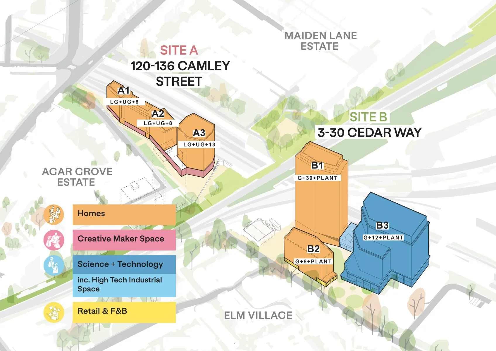 The sites sit between the new neighbourhood at King’s Cross and the council’s flagship development at Agar Grove.