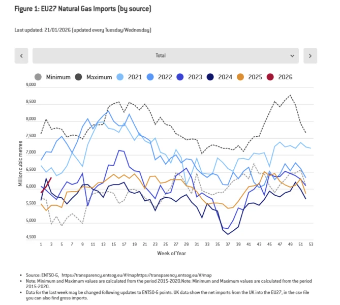 EU gas imports are currently showing a significant upward trend, according to recent analysis from the Bruegel think tank.