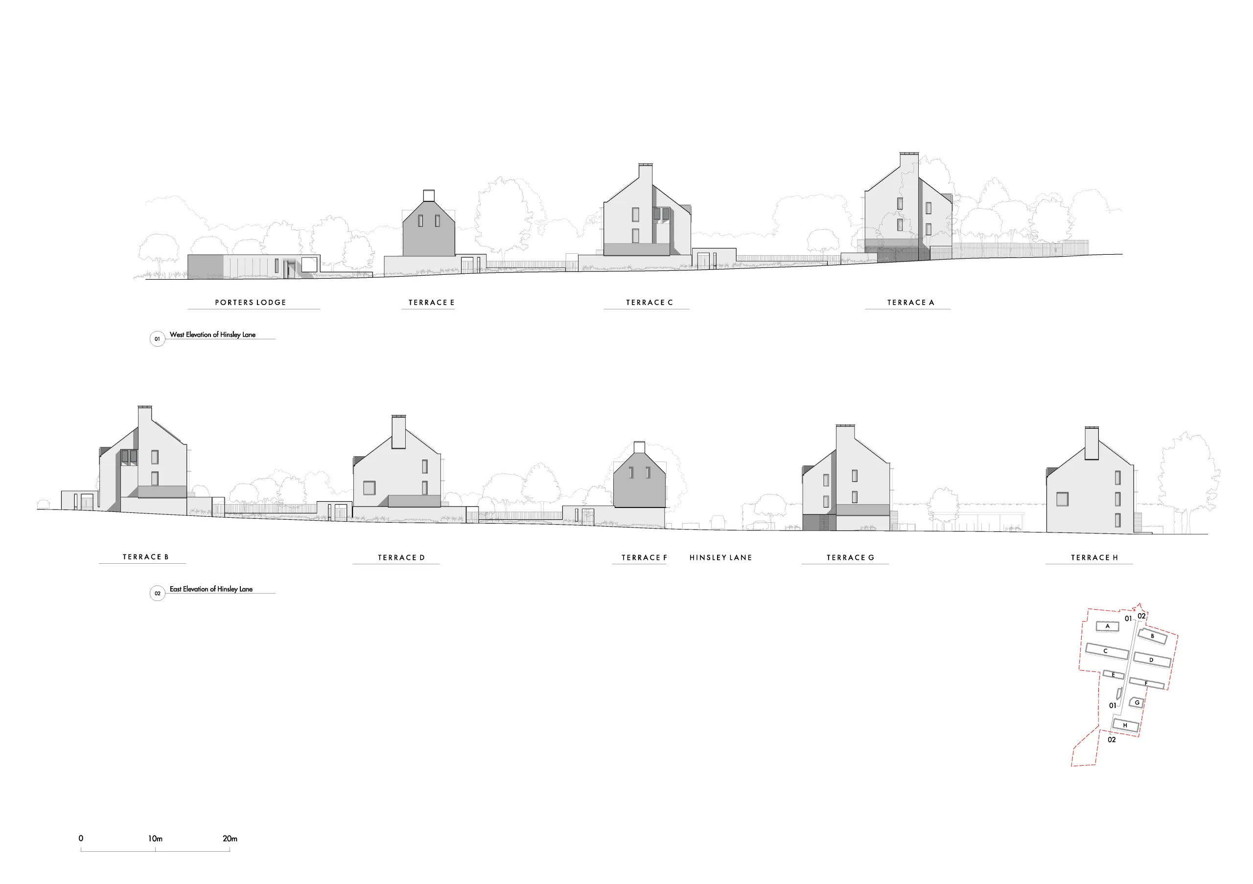 Ranging between two and a half and three storeys, the buildings are scaled to their context. Their positioning on the site is designed to both preserve the landscape setting and optimise the buildings’ orientation to support their environmental performance.