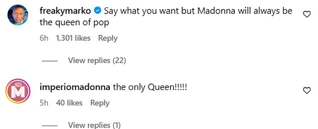 Fans wrote in the comments: ‘Say what you want but Madonna will always be the queen of pop’;
