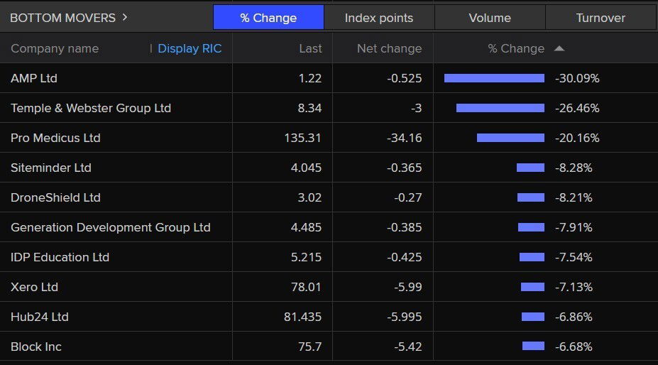 Here are the bottom movers, with Temple and Webster finishing down -32.6%.