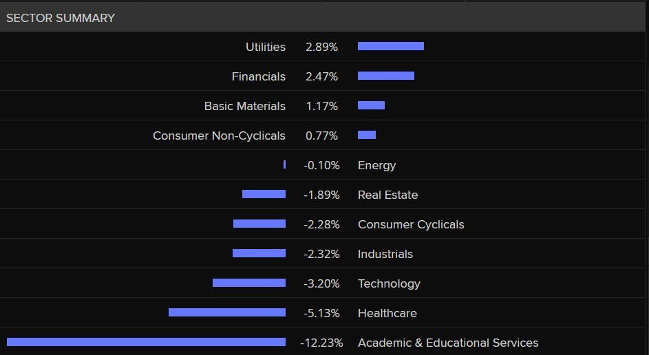 Five of the major sectors are up, while the rest are down. Have a look below: