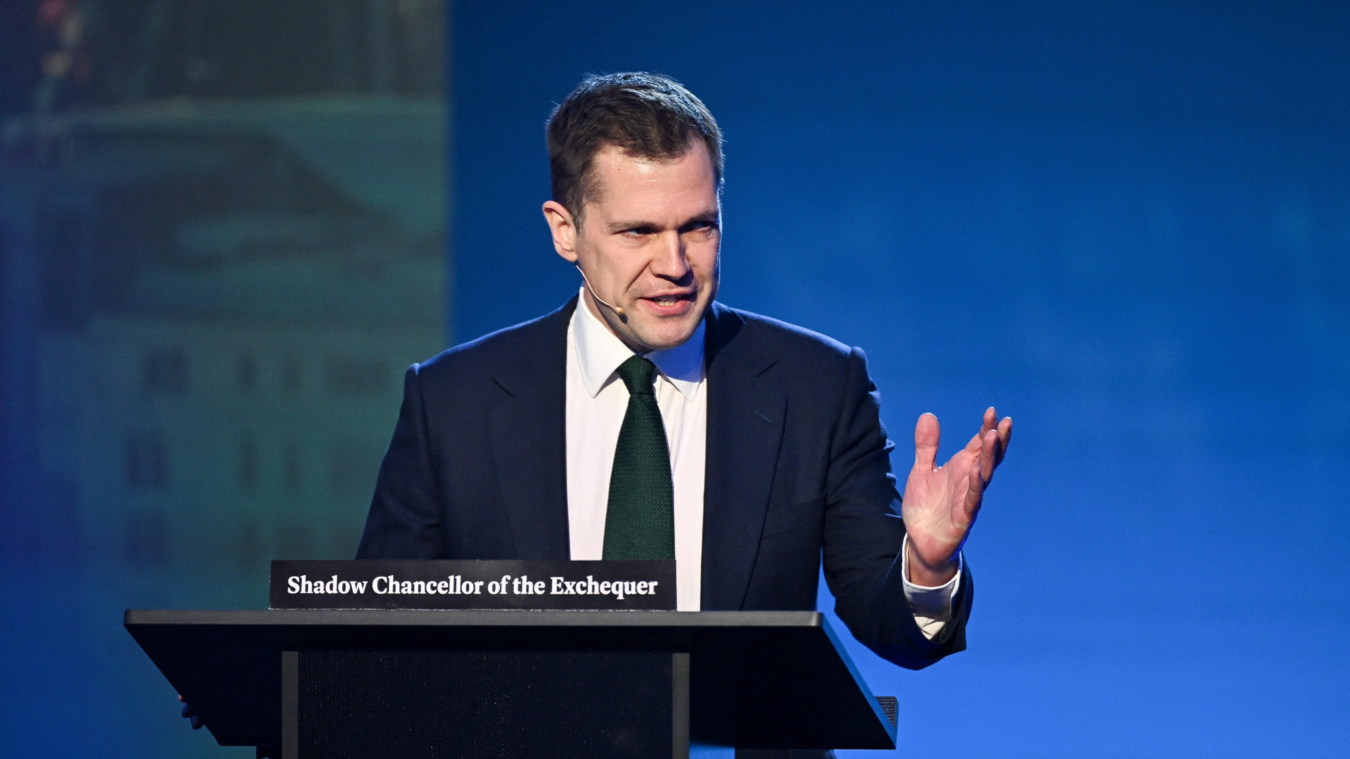 The podium to his left-hand side says “shadow business, trade and energy secretary”. This is not, technically, one of the big jobs, so its central position is surely confirmation that it’ll be Richard Tice.