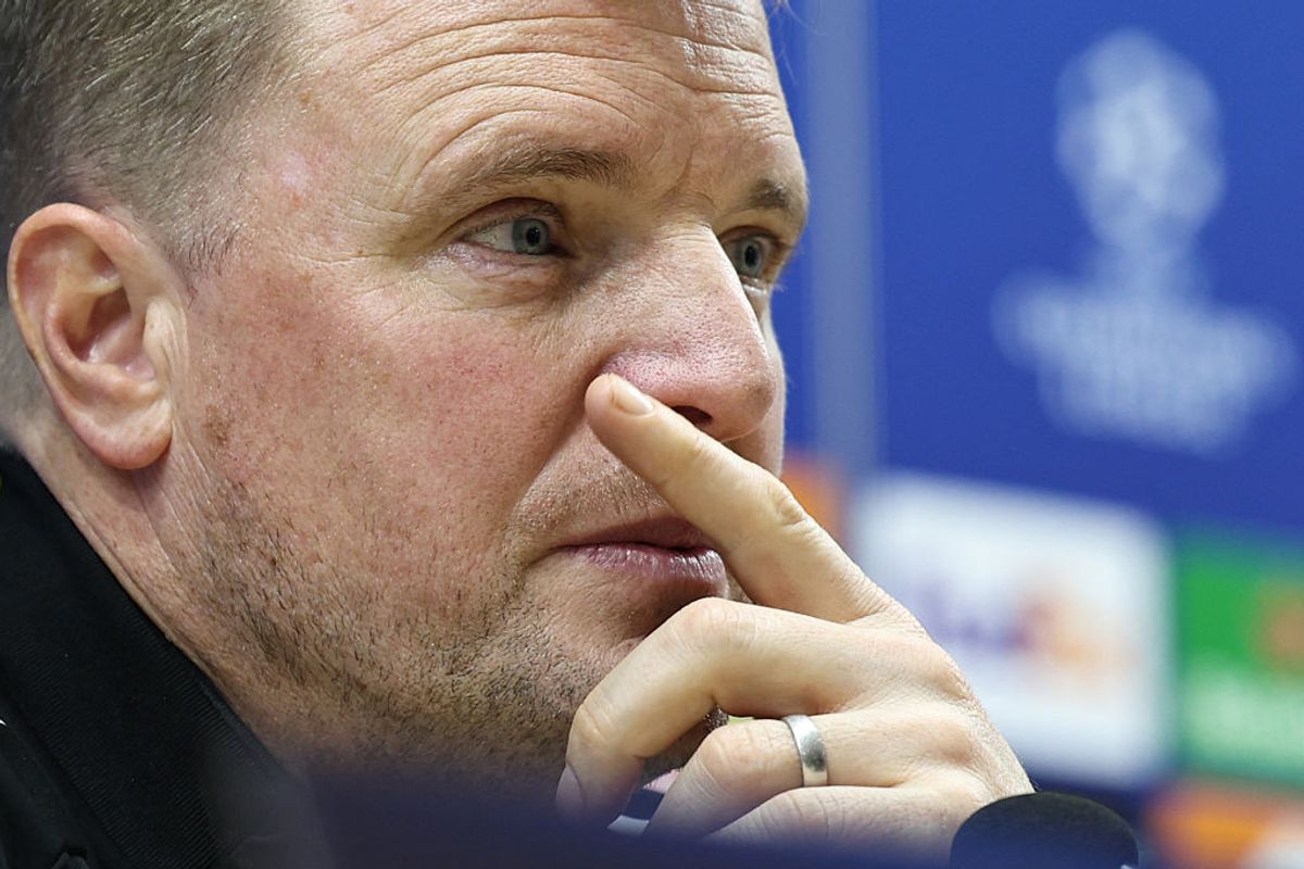 Eddie Howe attends a press conference at the Tofiq Bahramov Republican Stadium