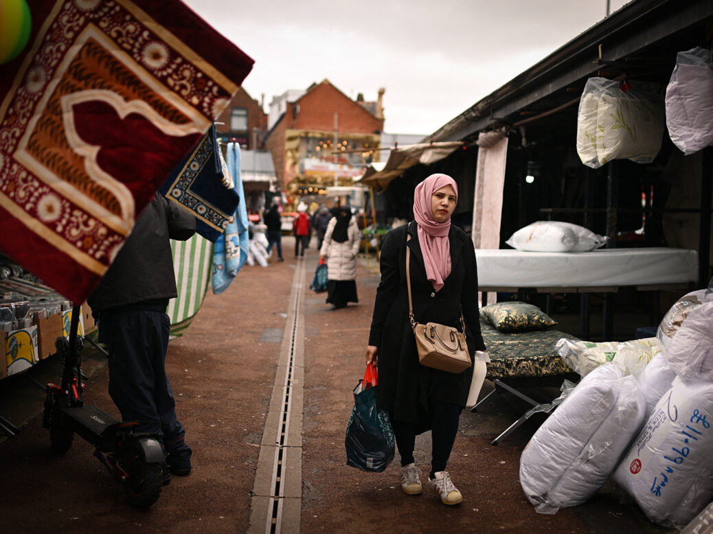 Shoppers at Longsight Outdoor Market in Greater Manchester, part of the Gorton and Denton constituency, ahead of the 26 February by-election. Photo by Oli SCARFF / AFP via Getty Images