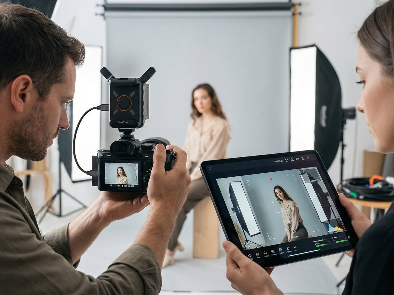 Picture a YouTuber who films with a mirrorless camera on a tripod across the room. Right now, checking framing or adjusting settings means walking over, making a change, walking back, and repeating until it looks right. With the CamCast mounted on that camera, the phone becomes both the monitor and the remote control. An instructor recording a craft tutorial gets the same benefit, turning their tablet into a live preview without needing cables snaking across the workspace or an expensive field monitor clamped to a light stand.