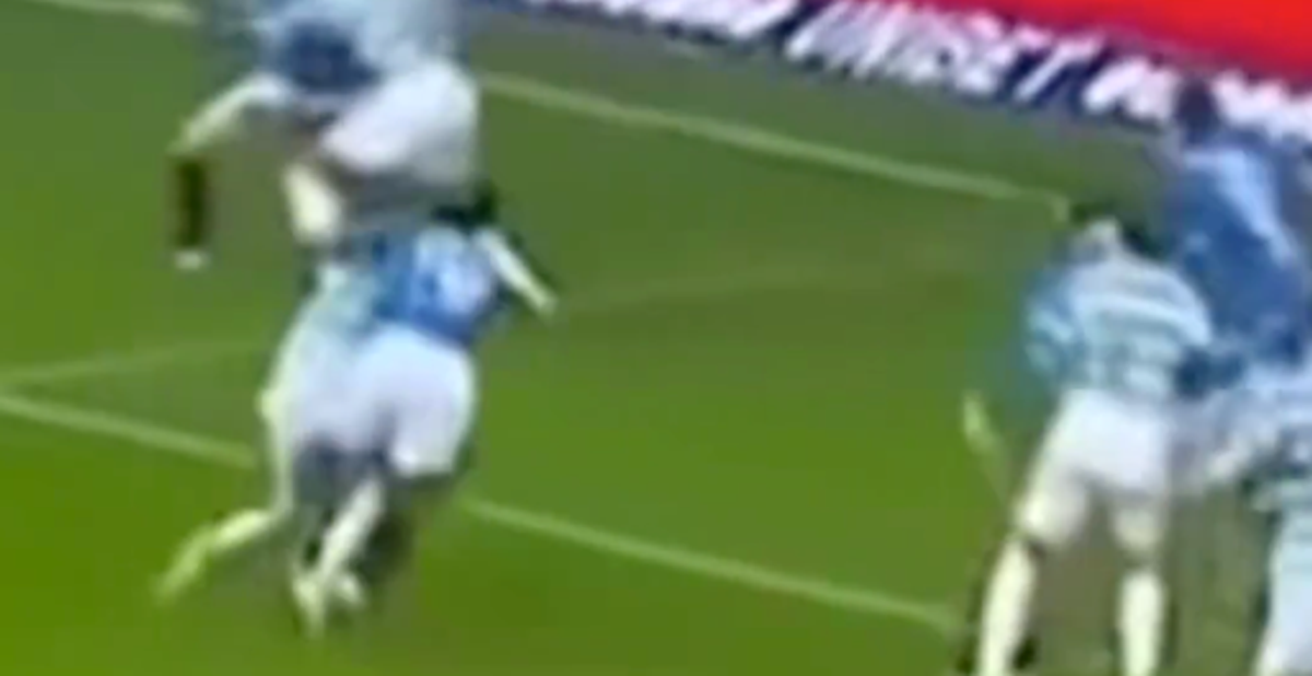 This incident occurred in the 82nd minute of the game as the Rangers full back jostled with the Tunisian winger as he made his way into the box.